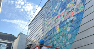 今回は、ご近所さんを中心にのんびりやってみようということで、告知は、イベント実施の2日ほど前のLINEとInstagram、当日の看板だけに留めて実施しました。結果、3時間の間に、当日看板を見てふらりとお立ち寄りくださった6名を含め14名の方がマスキングテープアートに参加してくださり、その上なんと、どデカイハートのワークショップを取り仕切りつつ作品を仕上げてくださったアーティストの西村さんのうれしいドタ参もありで、ゆったりとしながらも充実したいい時間を持つことができました(ぜひ記事の一番下の写真を見てみてください。ハートの下に、西村さんが作ってくださったジンベエザメと一緒に、西村さんと私(佐竹)も泳いでます(笑))。