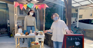 たまにカフェ、実は、やる方は毎回、そんなにお客さんが来てくれるとは思わずに蓋を開けてみるんですね。心許ないくらいの小さな木の屋台を組み立てて、ゆったりとした気分で準備をする。気負いが全くいらないんです。