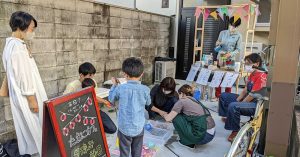 去る7月22日(土)、たまに京都下鴨拠点とそのお隣のヨウスケくんちで、たまにカフェ”ミニミニ夏祭り”を開催しました。(”たまにカフェ”については、こちらをお読みください)。今回は、前回のたまにカフェ夕涼み縁日で「俺もやりたい!」と立候補してくれたヨウスケくん(小3)を店主にお迎えし、夏祭りを楽しむ子どもたちとその賑わいを楽しむ大人たちとで、賑やかで和やかな時間を過ごしました。