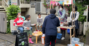 小野眼科医院の”たまにバル”は、患者さんや地域の皆さんとの肩の凝らない交流の機会を提供することを目的として開催されています。普段は、医師や医療スタッフとして患者さんと接するばかりのクリニックのみなさんも、”たまにバル”では、同じ地域の仲間として楽しい時間を共有することができる。この日は、4回目にして初めて好天に恵まれ、地元の常連さんたちが開始前からチャーシューやいなり寿司を広げ、準備万端でスタートしました。